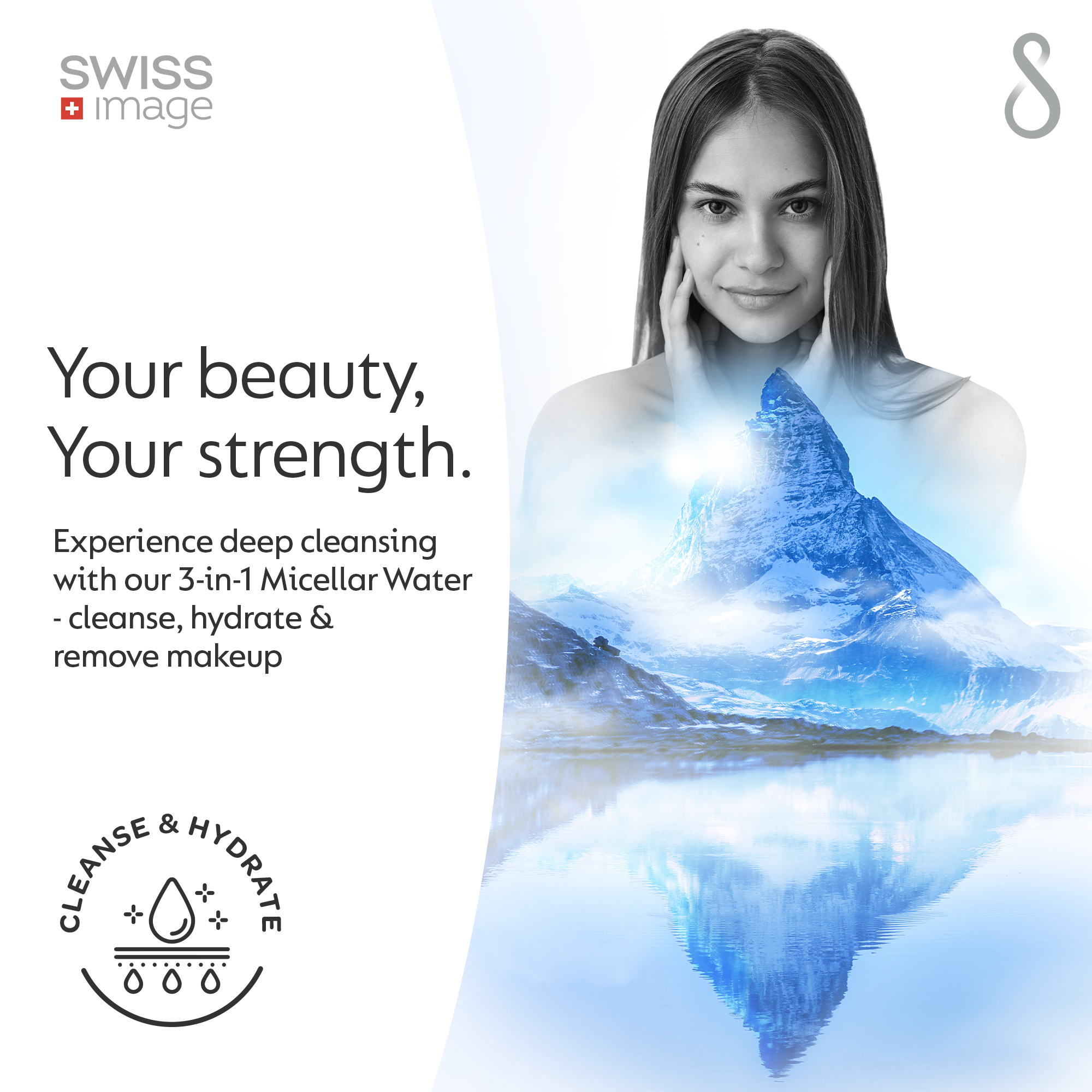 Swiss Image Двухфазная мицеллярная вода 400 мл | Средство для снятия макияжа 3-в-1 для лица, глаз и губ | Нежирный, удаляет макияж, увлажняет и освежает, формула не требует смывания | Все типы кожи | Сделано в Швейцарии