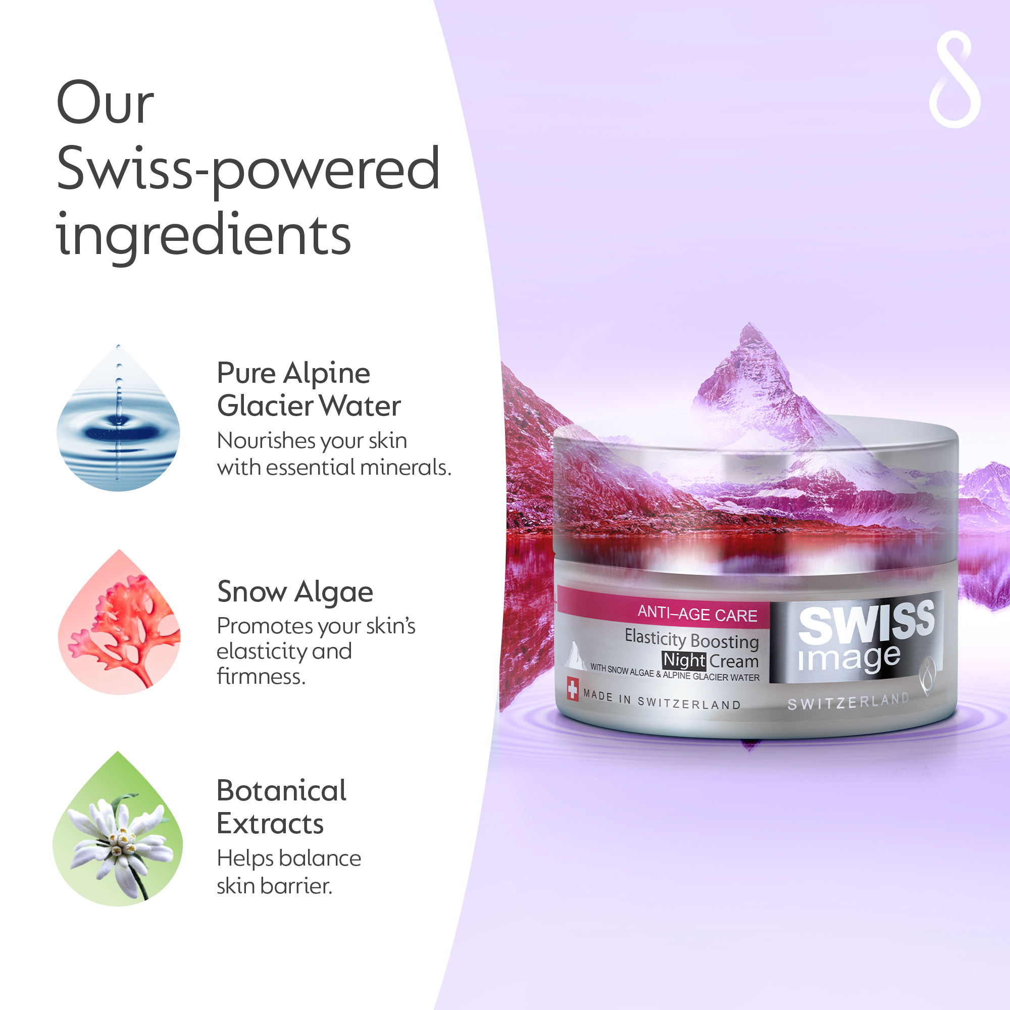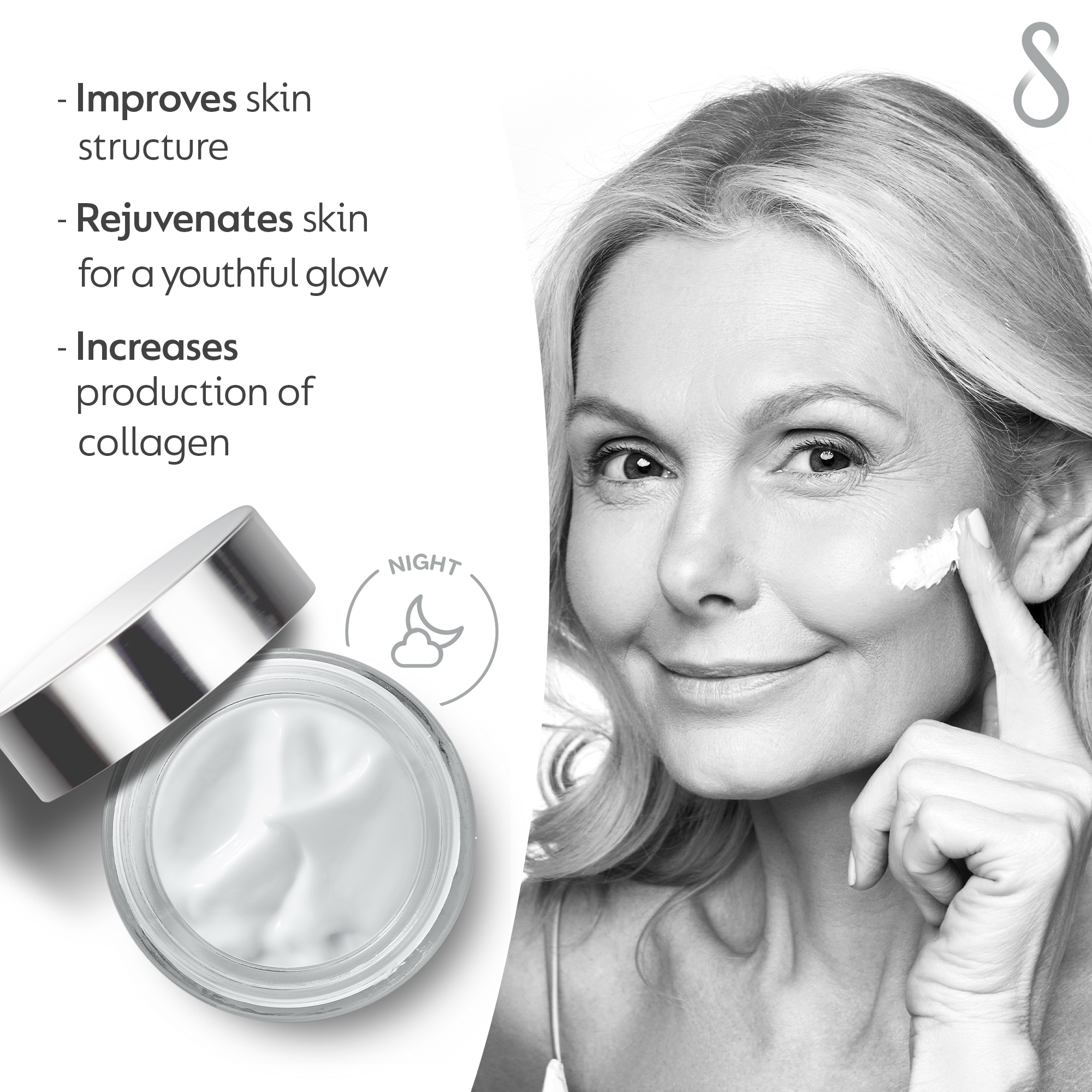 Swiss Image Ночной крем против старения 50 мл | Антивозрастная формула с повышенным содержанием коллагена, увлажняющим, разглаживающим морщины и восстанавливающим ночным кремом для гладкой и сияющей кожи | Сделано в Швейцарии | Все типы кожи