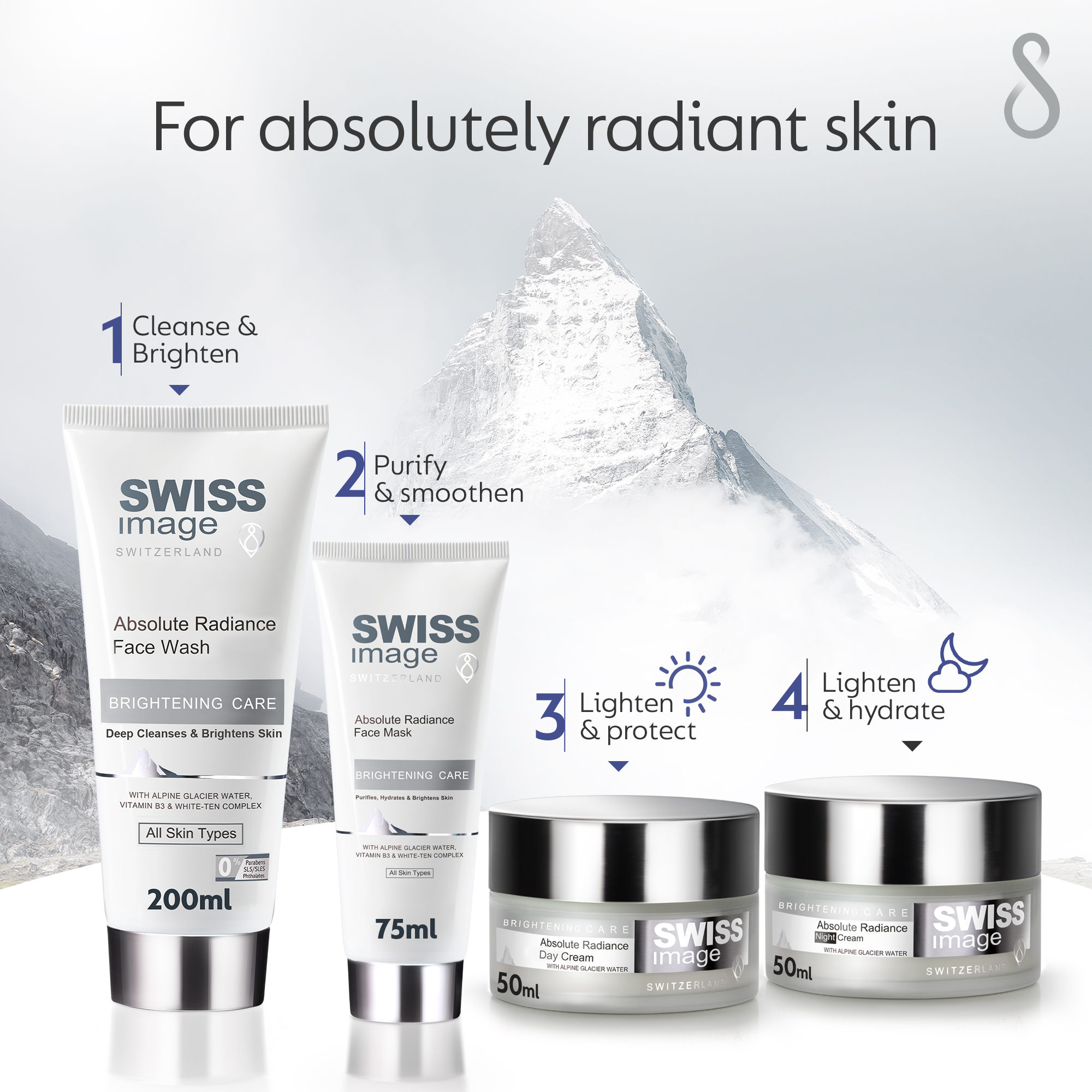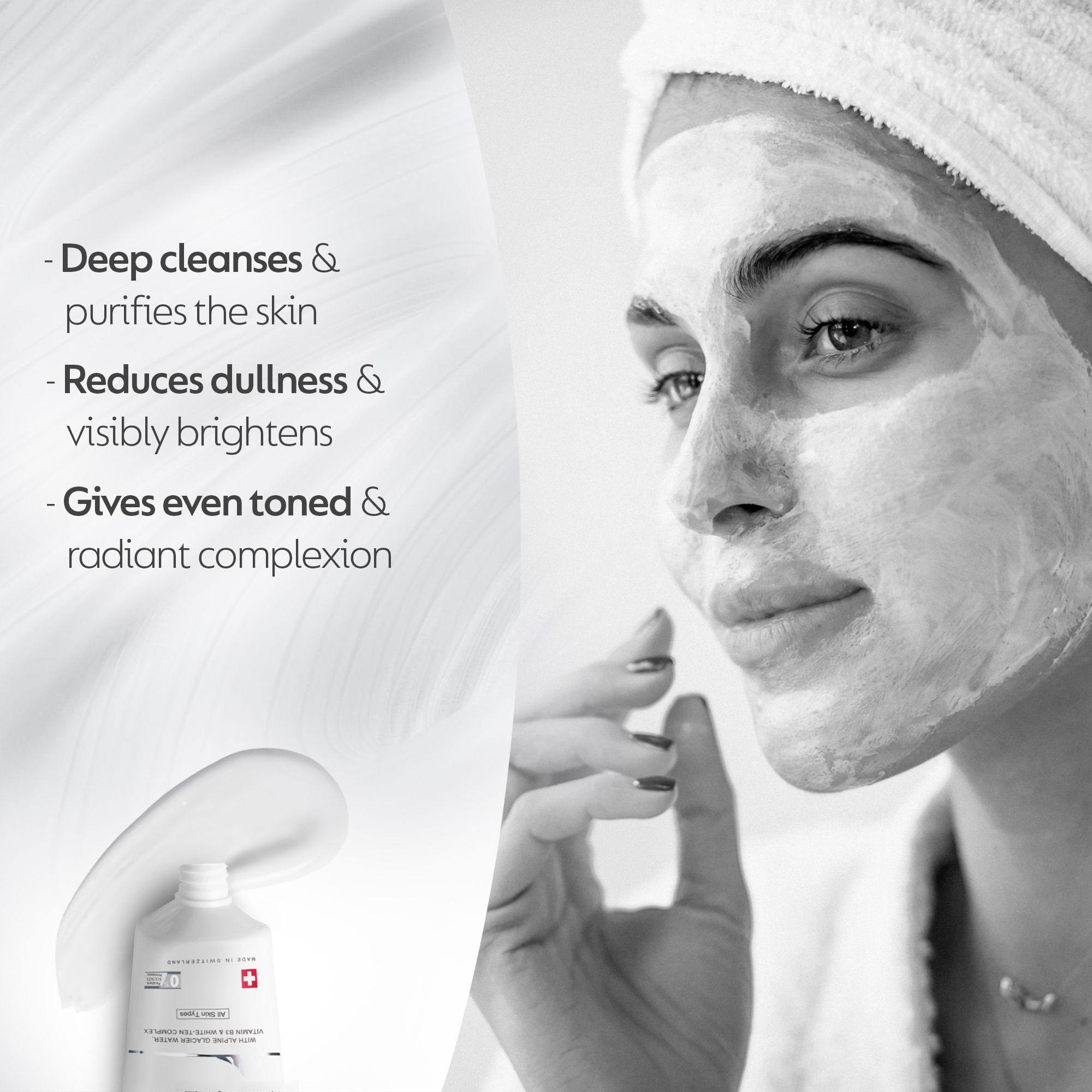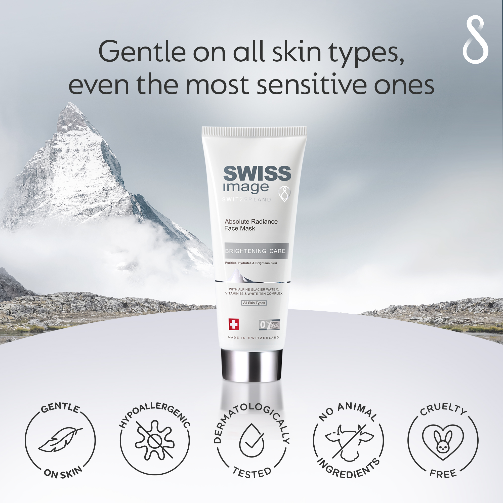 Swiss Image Осветляющая маска для лица «Абсолютное сияние» с ниацинамидом 75 мл | Очищает, увлажняет, осветляет кожу | Сокращает поры и выравнивает тон кожи | Выводит токсины и усиливает сияние | Все типы кожи | Сделано в Швейцарии