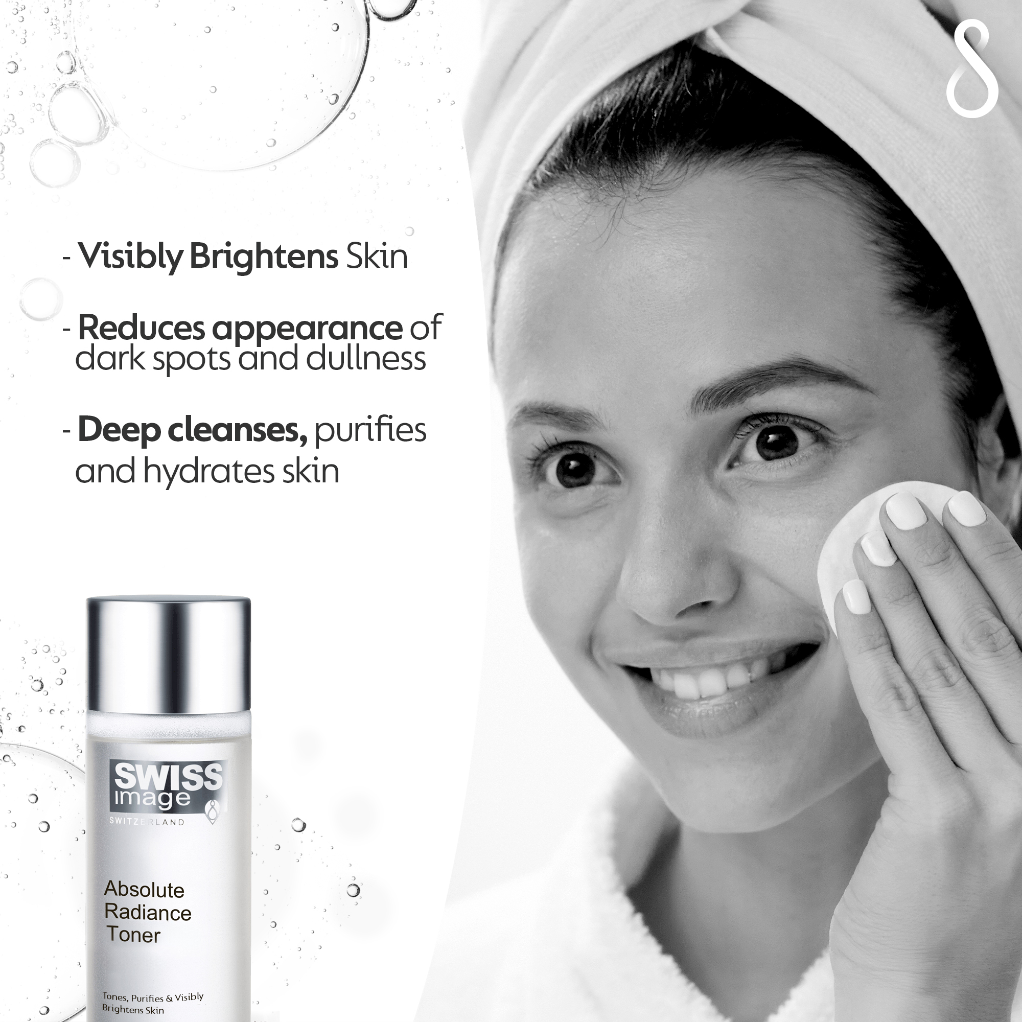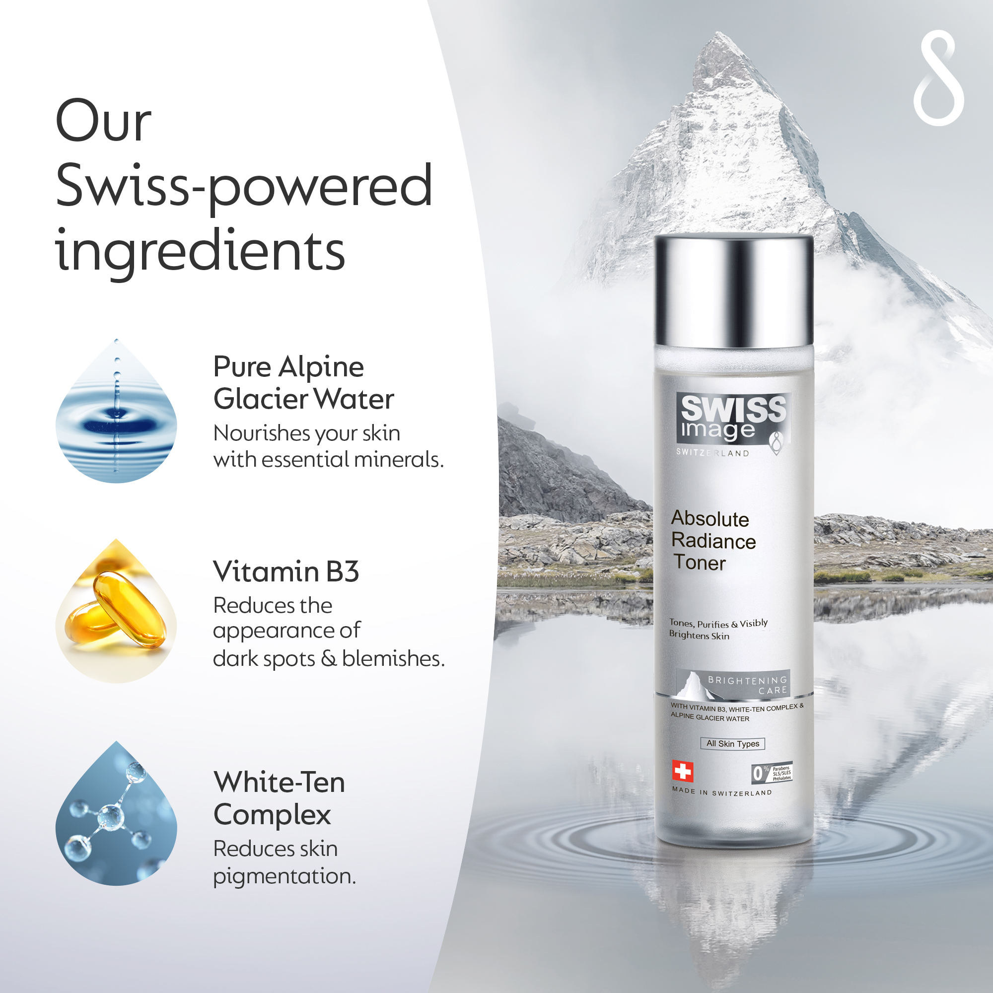 Тоник для лица Swiss Image для абсолютного сияния с ниацинамидом, 200 мл для осветления и увлажнения | Уменьшает темные пятна, гиперпигментацию и выравнивает тон | Все типы кожи | Мужчины и женщины | Сделано в Швейцарии