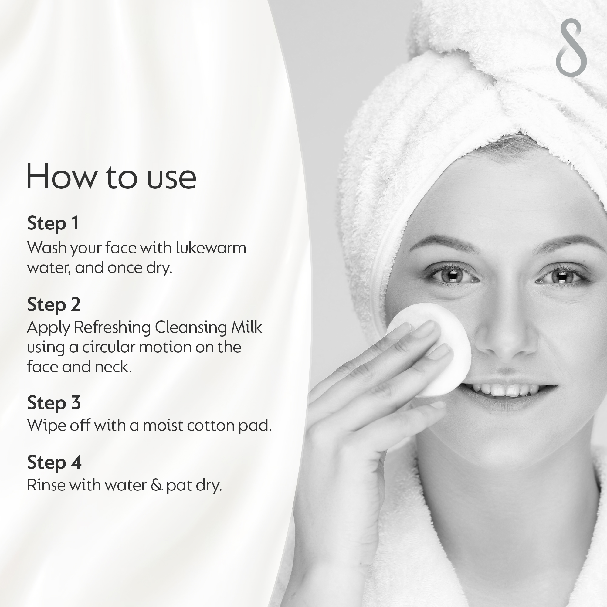 Шаг 1 Вымойте лицо теплой водой и высушите. Шаг 2 Освежающее очищающее молочко Aplly нанесите круговыми движениями на лицо и шею. Шаг 3 Протрите влажным ватным диском Шаг 4 Промойте водой и высушите