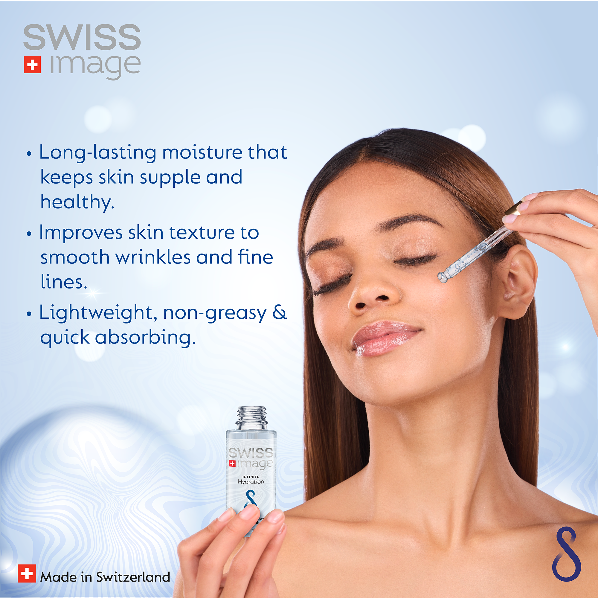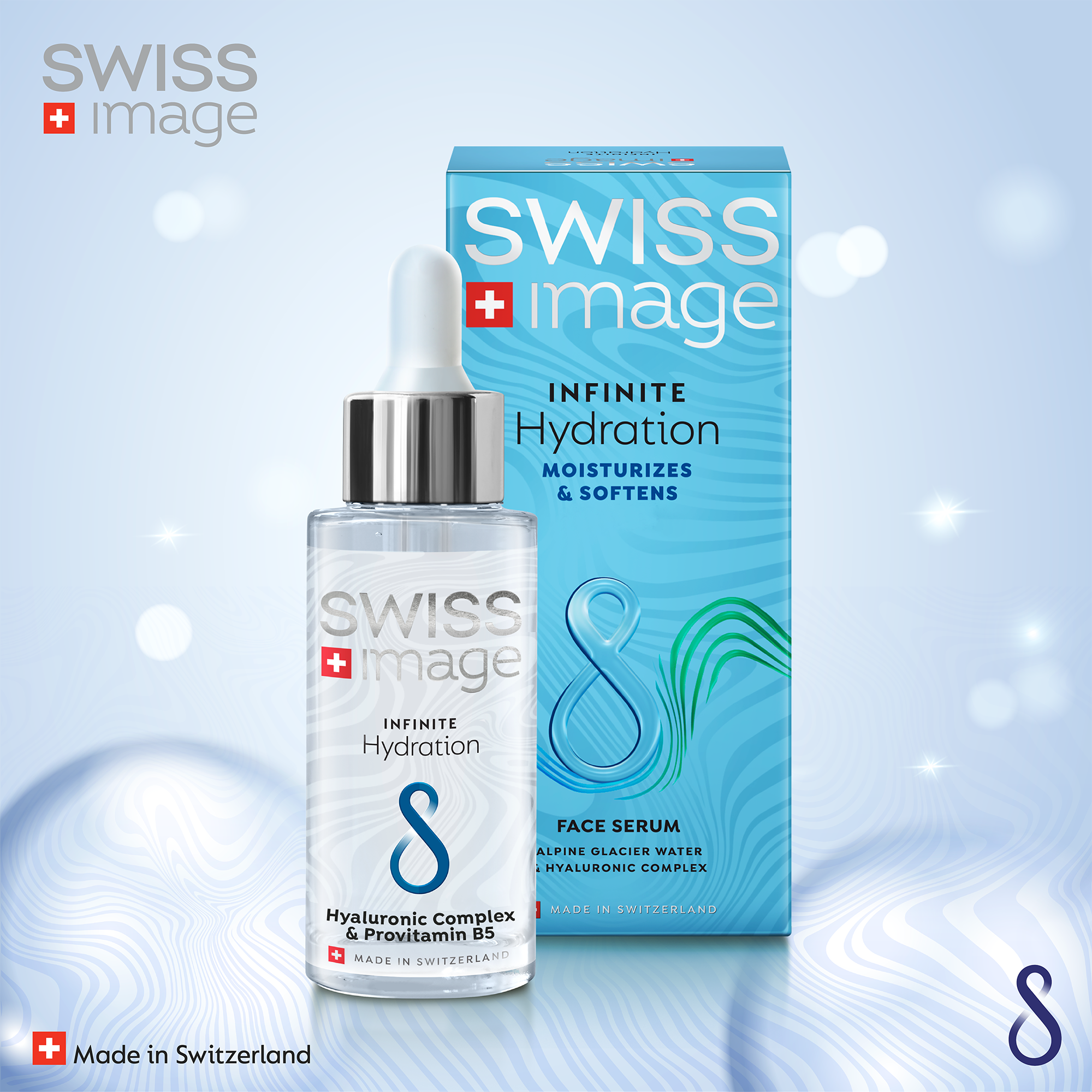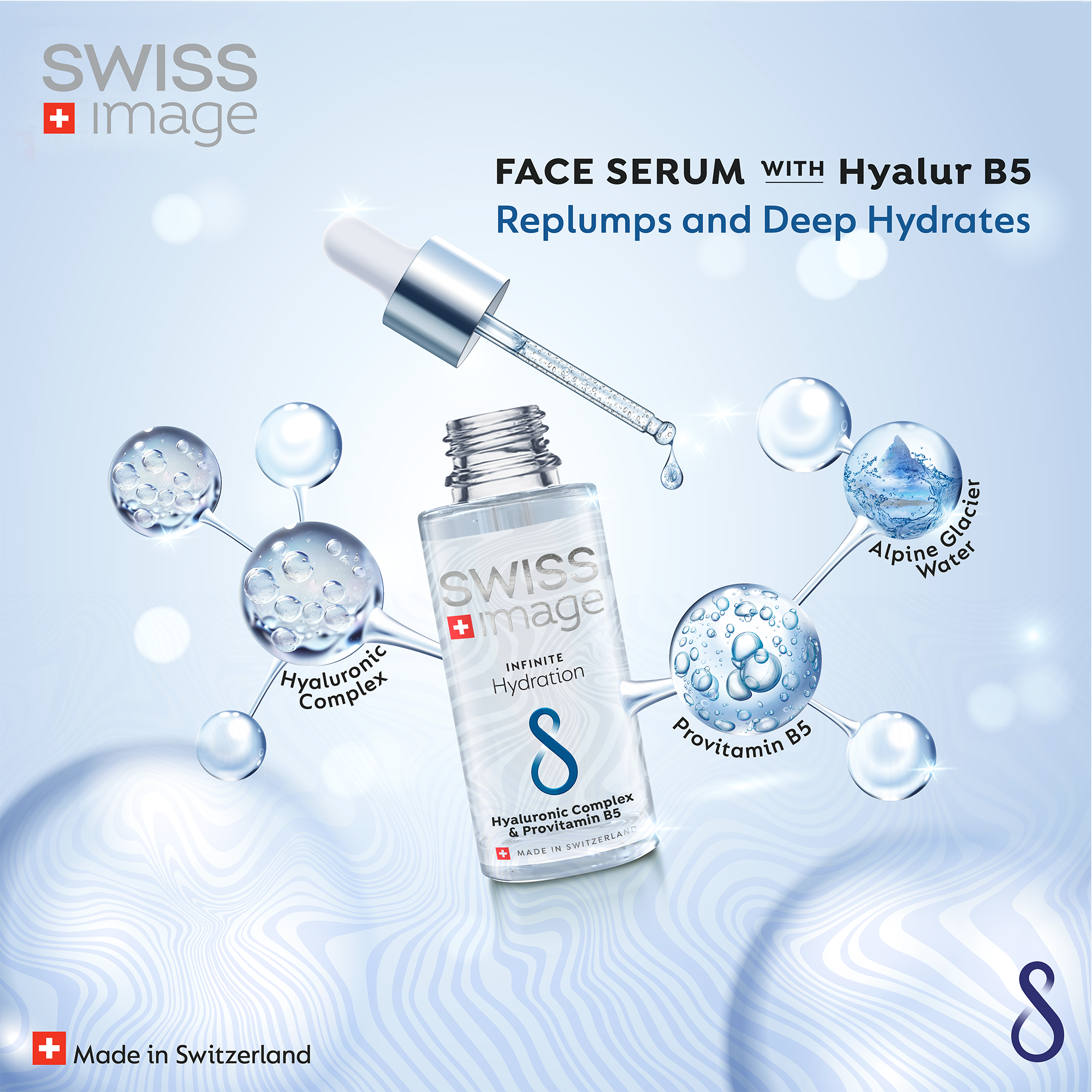 Swiss Image Гиалуроновая сыворотка для лица «Бесконечное увлажнение» 30 мл | Гиалуроновая кислота и пантенол для глубокого увлажнения, мгновенного увеличения объема, борьбы со старением и усиления сияния | Сыворотка для лица швейцарского производства для всех типов кожи