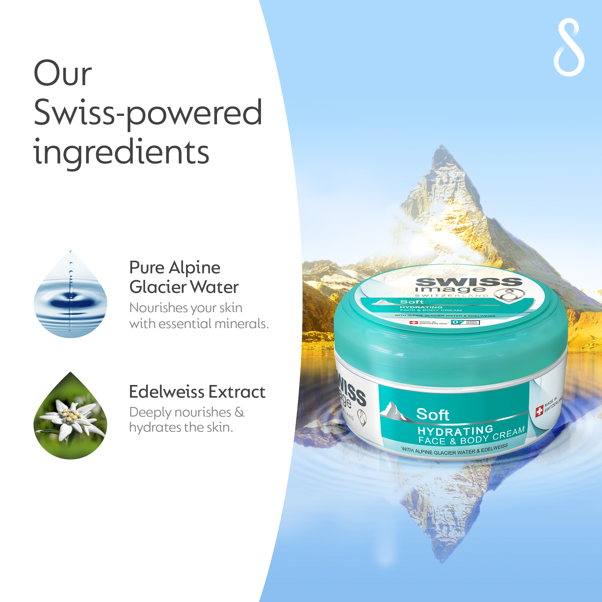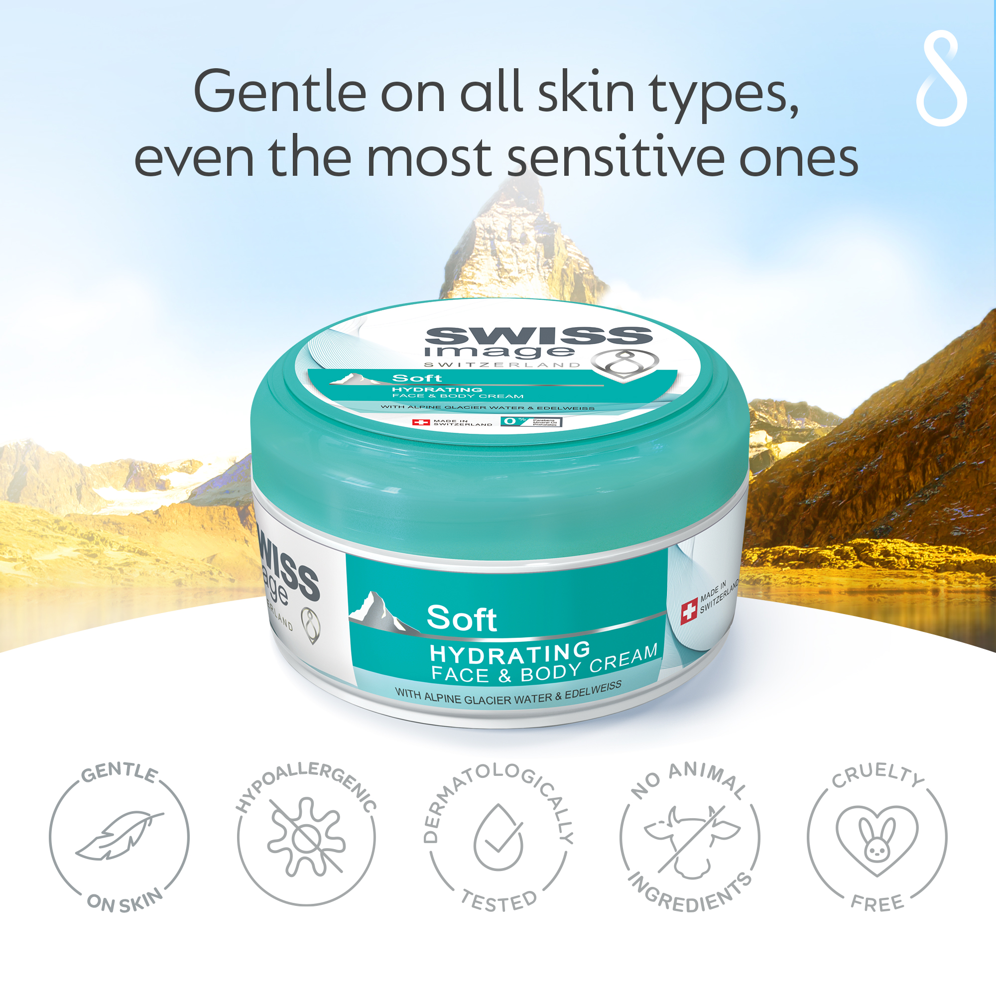 Swiss Image Мягкий увлажняющий крем для лица и тела 200 мл | Легкий увлажняющий нежирный крем | Увлажняющий крем для лица и тела для ежедневного использования
